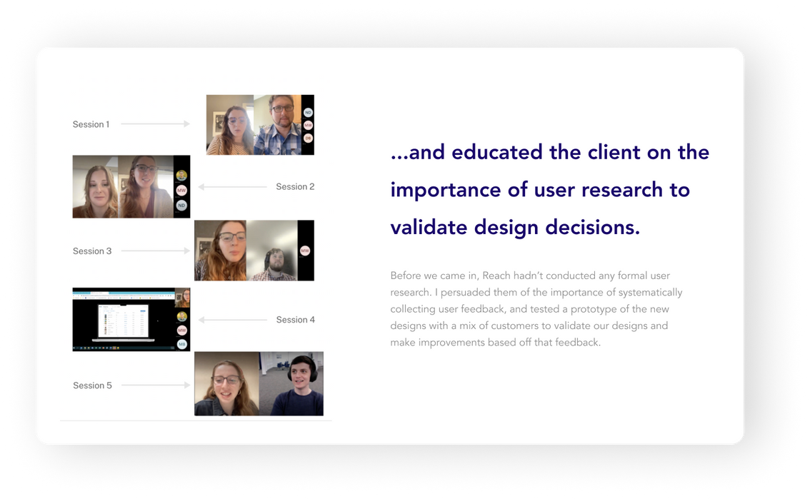 Throughout the course of this project, I learned the importance of communicating clearly and confidently with developers. I established a new routine of weekly check-ins with my entire team to talk through what’s coming next for design, answer and ask questions, and ensure that everyone is on the same page.