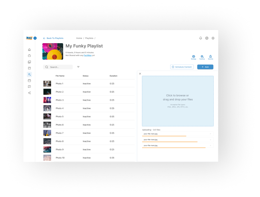 This is an example of how a Reach customer can easily create, edit, and schedule playlists of content to display on their players.